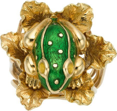 David Webb 1964 Platinum 18K Yellow Gold Green Enamel Frog BroochBidhaus4.2(839)$14,520(21 bids)Available to Buy Now
