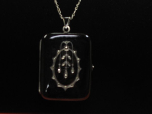 Enamel locket, , Black, rectangular enamel locket