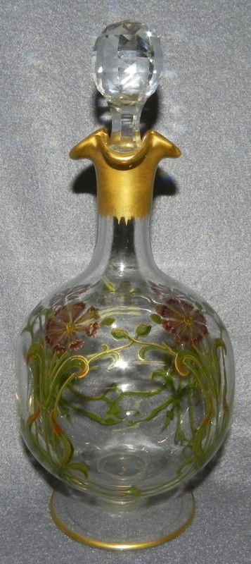 Enamel pinched decanter - hand painted