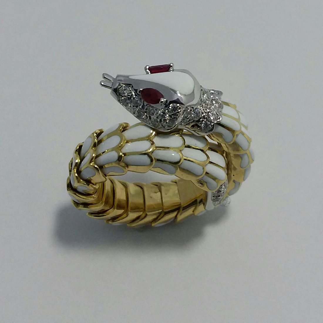 Enamel Snake Ring with Ruby Eyes