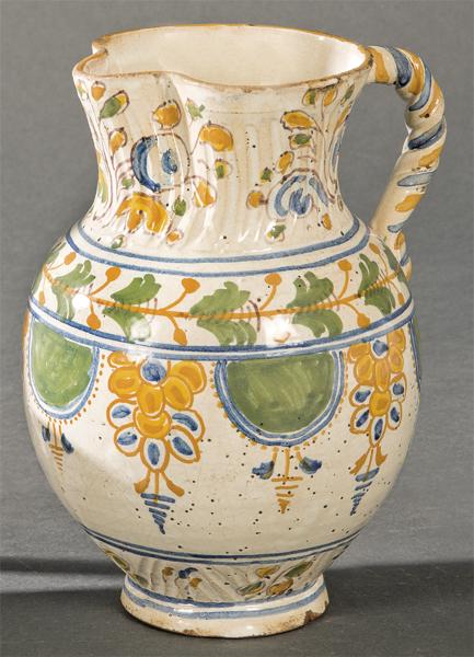 Enameled ceramic turned jug, with ring base