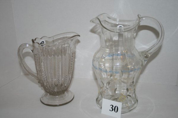 Enameled pitcher and Pattern glass pitcher