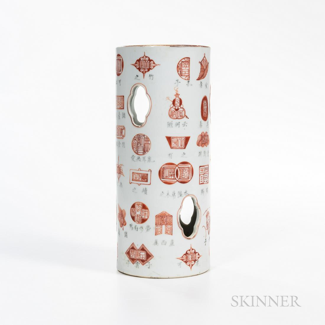 CHINESE EXPORT ROSE MEDALLION UMBRELLA OR CANE STAND9 hrs LeftA Pair of Chinese Porcelain Hat Stand Lamps with One Hundred Antiques MotifsMar 04, 2026A Chinese Qianjiang decorated and cylindrical shaped porcelain hat vase3 days LeftPorcelain vase. China. 19th century. Square form. Iron red decoration of historical figures. 10.5in.Mar 01, 2026Chinese Famille Verte Vase Mounted as a Lamp5 days LeftSmall Japanese Hand Painted Cylindrical VaseMar 05, 2026Chinese Famille Rose Porcelain Umbrella Stand6 days LeftLarge baluster vase China, 19th century126 Lots AwayAntique Coral Ground Gilt Decorated Porcelain Hat Stand Yushengren MarkFeb 28, 2026Chinese Export Porcelain Famille Verte TrumpetVaseMar 15, 2026Chinese Rose Medallion Porcelain Baluster VaseMay 07, 2026Chinese Famille Rose Porcelain Baluster VaseMay 07, 2026Chinese Famille Rose 'Hundred Antiques' Porcelain Vase – Republic PeriodMar 05, 2026Bithong or pot à pinceaux de lettrado, China, Republic Period, 20th Century4 days LeftCHINESE FAMILLE ROSE HAND PAINTED PORCELAIN BRUSH POTMar 08, 2026Antique Chinese Famille Rose Jar / Lamp with Jade Rings9 hrs Left