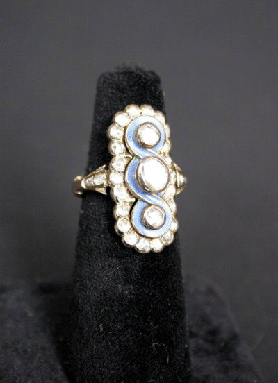 Enameled Rose Cut Diamond Ring
