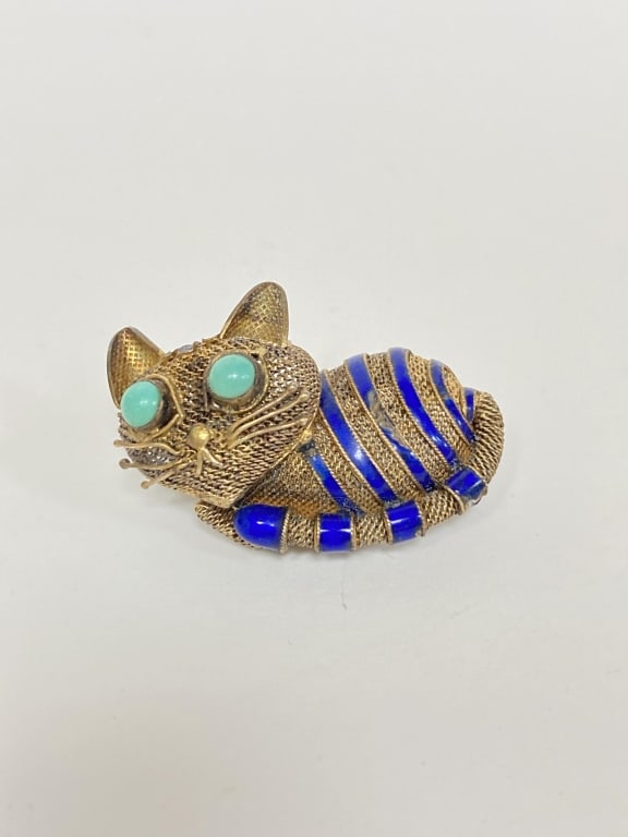 Enameled Cat Pin Brooch c 1950 - 1960 Green Jeweled Eyes Vintage Costume JewelryVidi Vici Gallery4.5(301)$57 days Left