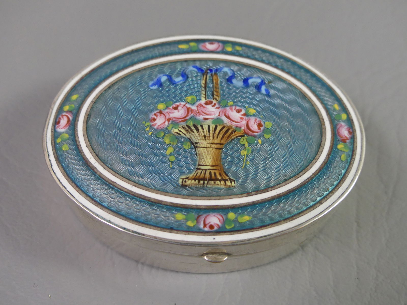 ENAMELED SILVER COMPACT - ROSE BASKET