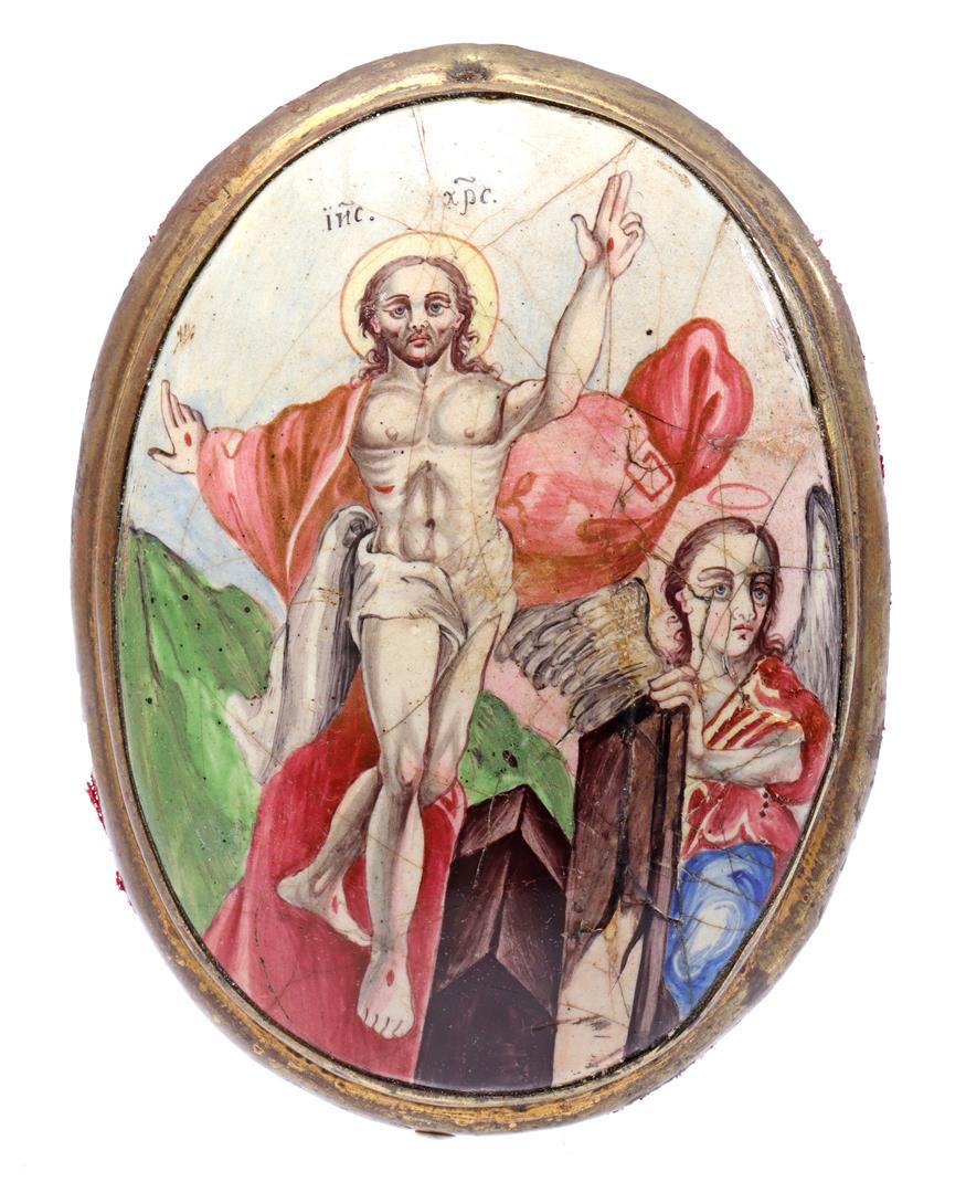 Enamelled processional shield with brass frame