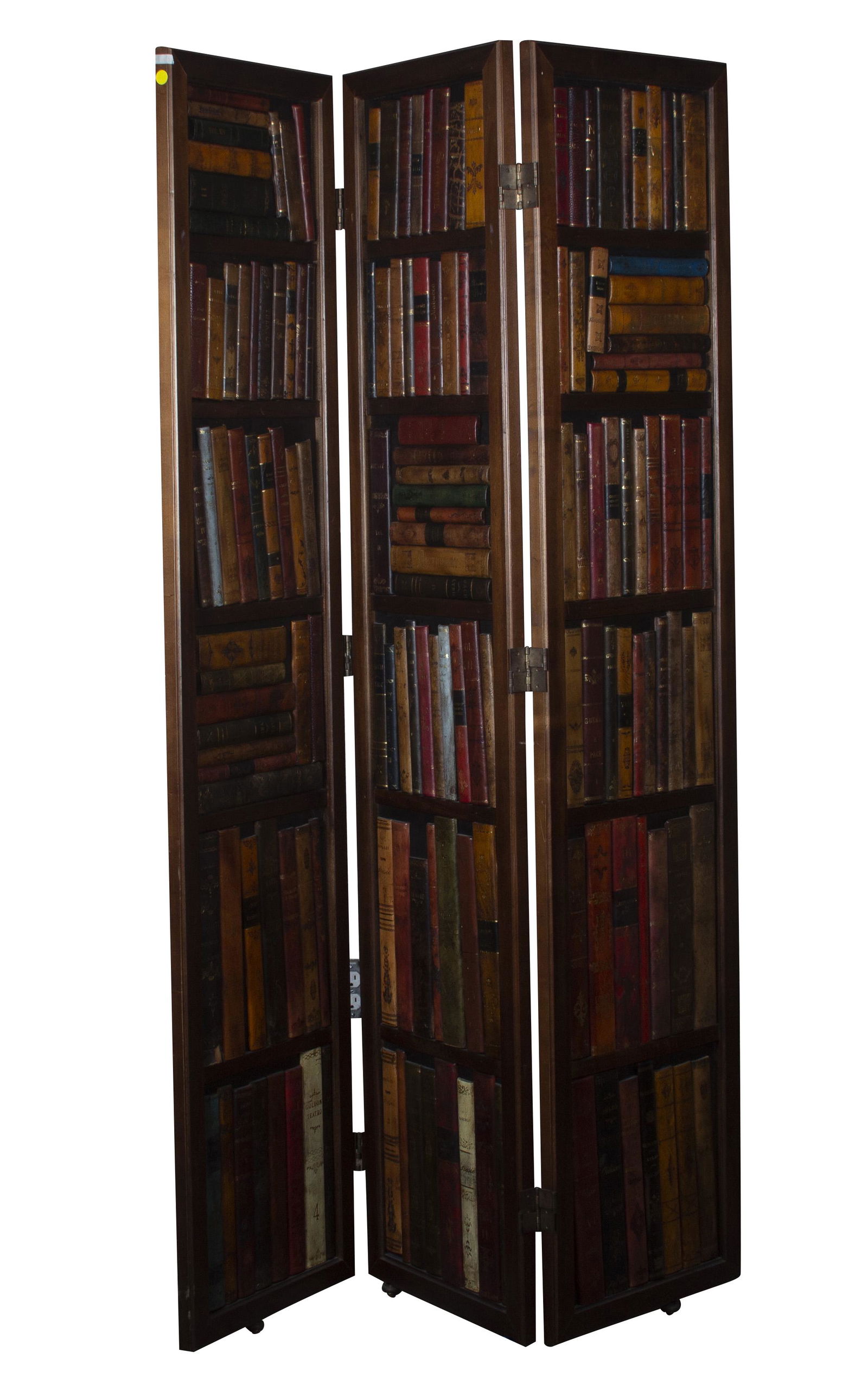 English 3-Panel Leather Bound Book Case Screen Circa