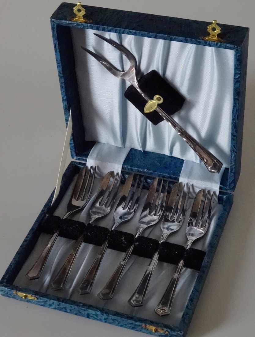 English Ancora Silver Plated Dessert Fork Flatware Boxe