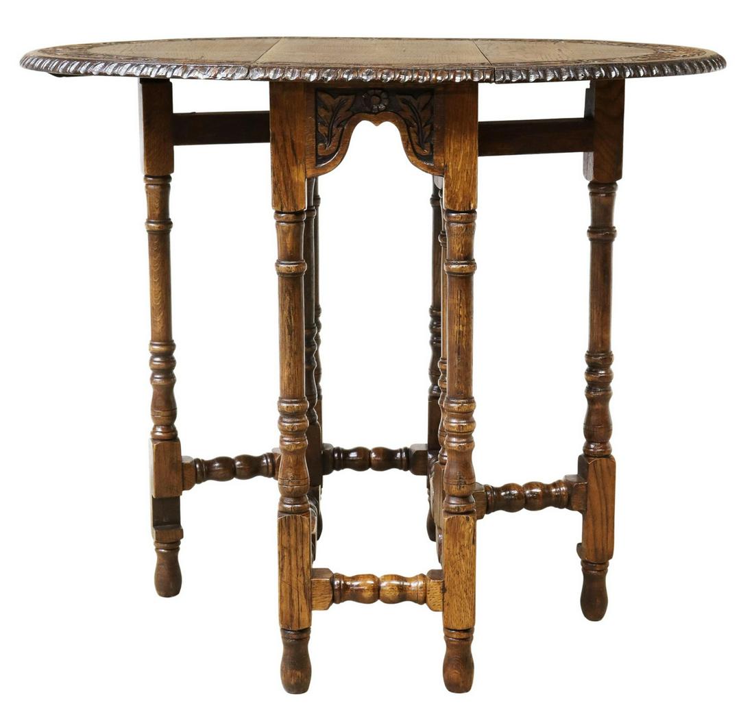 ENGLISH CARVED OAK DROP-LEAF TABLE