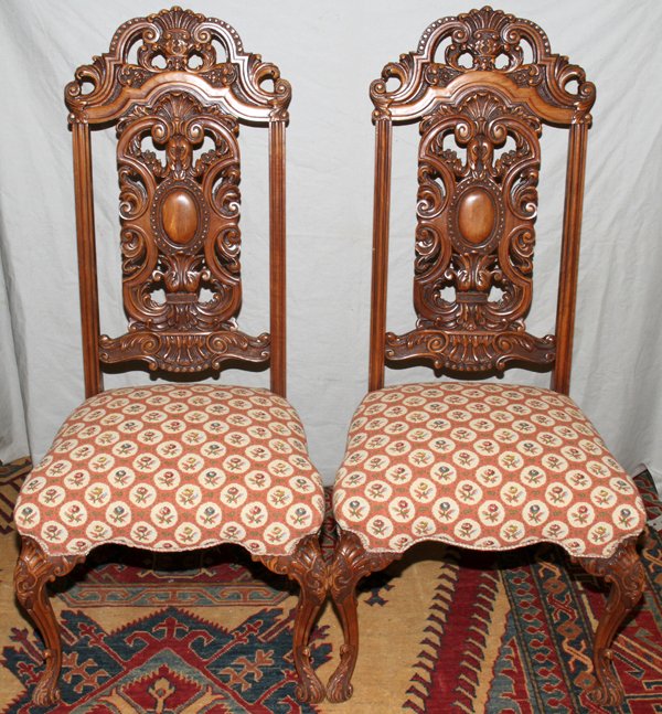 ENGLISH CARVED WALNUT SIDE CHAIRS, C.1930, PAIR
