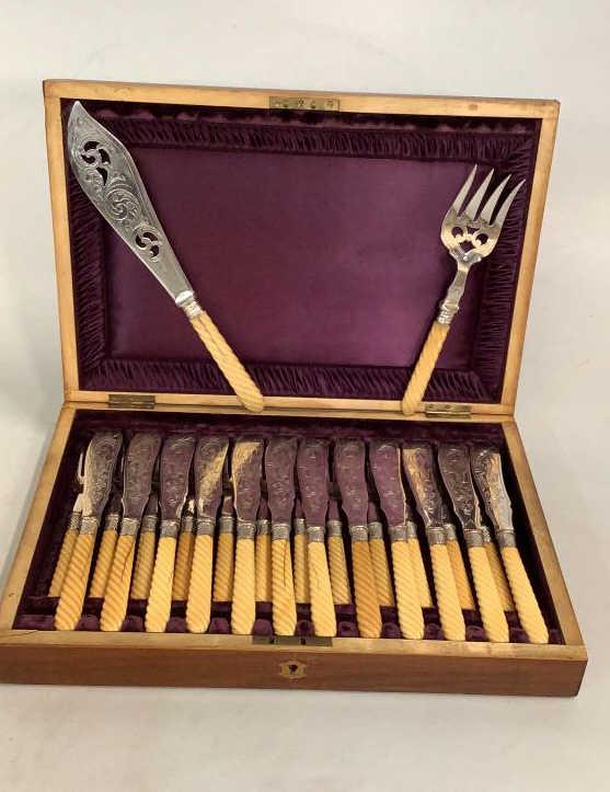 Antique English Silver Plated & Ivory-Handled Dessert Cutlery Set, Circa 1850s, in Original MahoganyOakwood Auctions4.5(147)$10Apr 05, 2026
