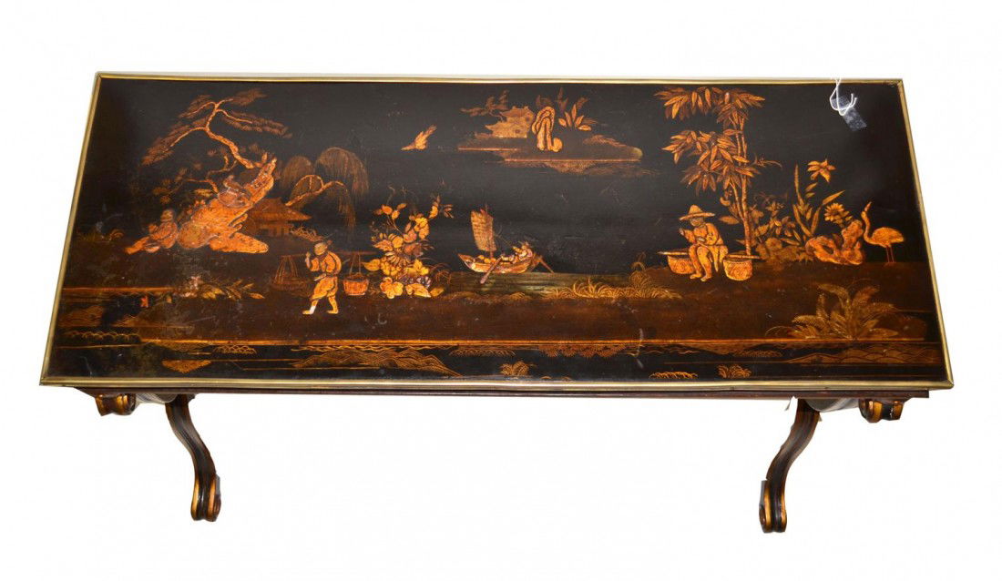 (4) ENGLISH REGENCY STYLE BLACK LACQUER CHINOISERIE NESTING TABLESFeb 21, 2026Chinese Export Lacquered Bar, Ebony, Raised Figure Carvings, ChinoiserieMid Century Modern Black Lacquer Chinoiserie Coffee Table with Mother Of Pearl InlaysFrench Louis XV Style Chinoiserie Commode, Chest Manner of JansenChinese Black Coromandel Lacquer Inlay Low TableFeb 15, 2026Chinoiserie Gilt and Black Lacquered Low TableApr 07, 2026A Solemn Gilt Bronze Landscape Pattern Table ScreenMar 07, 2026Chinoiserie Coffee Table. Asian Style Form and Motif.4 days LeftEnglish Chinoiserie Decorated Champaign ChestApr 07, 2026A Fine Large Chinese Chinoiserie Lacquer Cabinet6 days LeftChinoiserie Mirrored Top Lacquered Low TableMar 19, 2026A large Jennens & Bettridge Chinoiserie papier Mache tray with fitted wooden stand 64 x 50.5cm. (2)5 days LeftChinoiserie-Style Painted Tole Tray Table3 hrs LeftChinoiserie Gilt Lacquered Cabinet & Table4 days LeftChinese Red Lacquer Console TableFeb 21, 2026Scarborough House Hand Painted Ebony Gilt Console Table Chinoiserie Style2 days Left