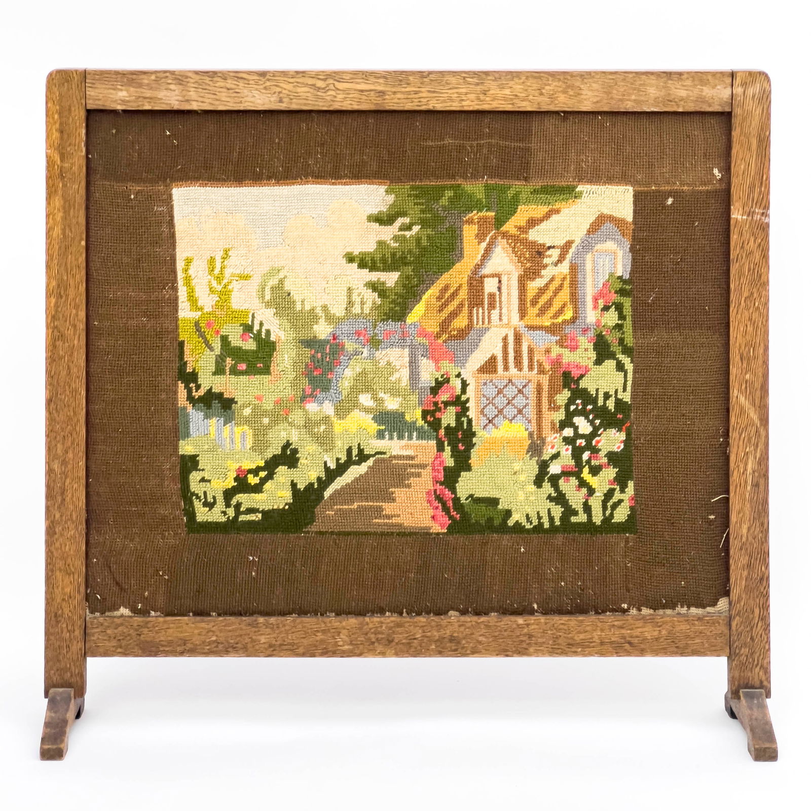 English Cottage Needlepoint Fireplace Screen