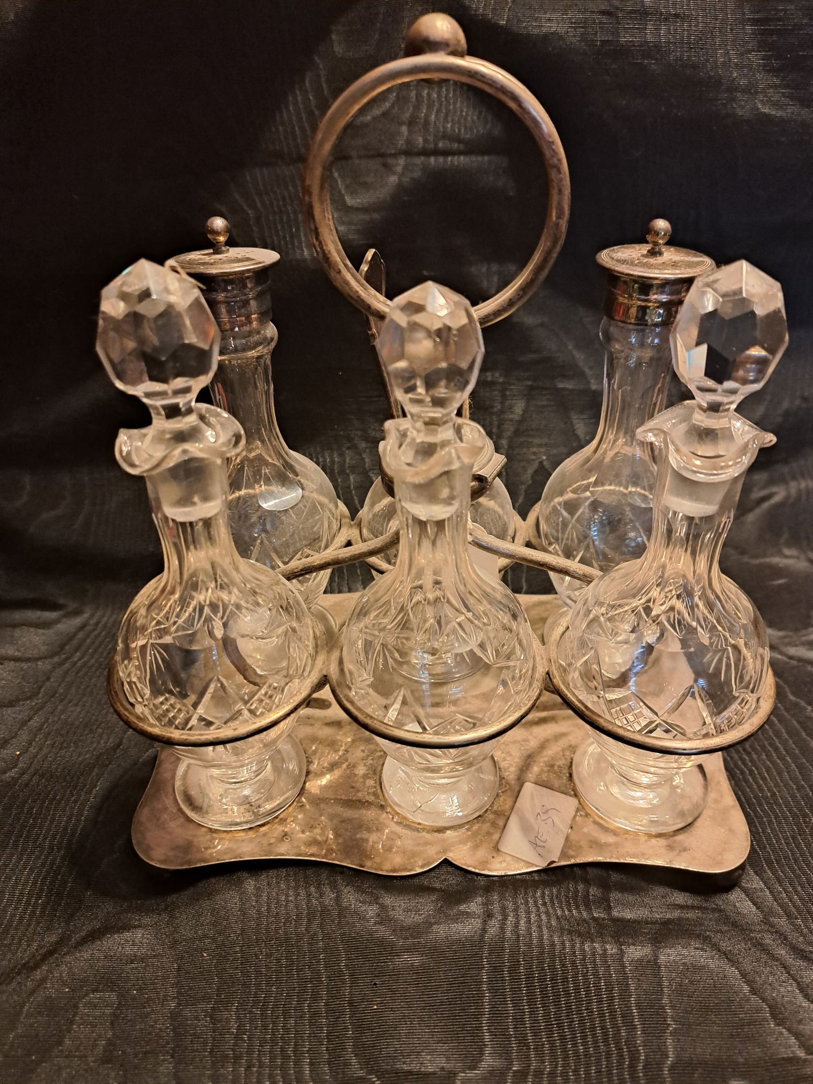 Lot 3 Venetian Style Glass Decanter & Goblets3 days LeftVictorian Era Cruet Set, Silver-Plate Serving Tray289 Lots AwayGroup of Three Antique Glass Oil LampsMar 15, 2026Vtg 3 Candle Bouillotte Style Brass & Crystal Lamp3 days LeftSilverplate Cruet Set With Bell & Glass Bottles2 days LeftVictorian Silver Plate and Cut Glass Cruet SetFeb 15, 2026Victorian Silverplate Cruet Stand SetFeb 28, 2026English cruet set, 19th century, consisting of a richly chiseled holder with two cut glass bottles7 days LeftA FANCY ENGLISH SILVERPLATE TANTALUSFeb 22, 2026DECANTER STAND WITH BOTTLES & STERLING LABELSFeb 20, 2026A VICTORIAN SILVER RECTANGULAR CRUET STANDFeb 17, 2026VICTORIAN SILVER PLATE AND CUT GLASS CRUET SET.Feb 19, 2026VICTORIAN ERA SILVER PLATE CRUET SET W/ AMBER GLASSFeb 21, 2026VICTORIAN ERA SILVER PLATE CRUET SET W/ GLASSFeb 21, 2026White Star Line Art Deco Crystal & Silver Plate Cruet SetMar 15, 2026DANIEL & ARTER 1900 London, Bailey Banks & Biddle 6 Pieces Cruet Set Cut GlassFeb 18, 2026