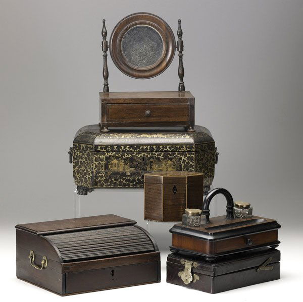 Estate Lot of 5 Antique Chinese & Bronze: Box, Bottle, Tray, Vase & Leather WalletMar 15, 2026SIX ASSORTED ANTIQUE WOODEN BOXESMar 07, 2026Antique lap desk, Chinese lacquer jewelry box, and more boxesFeb 26, 2026Large collection chinoiserie lacquerware2 days Left19TH-CENTURY KASHMIR INLAID DRESSER/JEWELRY CASKET5 days Left19th Century Tea Caddy & Other BoxesMar 07, 2026Nice Chinese cloisonne accessory group1 day LeftChinese Export gilt lacquer gaming box3 days LeftA Japanese Lacquer BoxMar 01, 2026A Chinese hardwood vanity box4 days LeftCollection Antique Japanese Desk or Dresser BoxesFeb 28, 2026A Rare Wooden Lacquer Painted Gold Landscape Pattern BoxMar 14, 2026A pair of exquisite hand-painted and gilded lacquer boxes from a rare collection.7 hrs LeftFIVE PIECES OF 19TH C. ASIAN EXPORT PIECES.4 days LeftChinese rose wood treasure box Qing dynastyFeb 25, 2026Collection Antique English Desk Top Valuables BoxesFeb 28, 2026