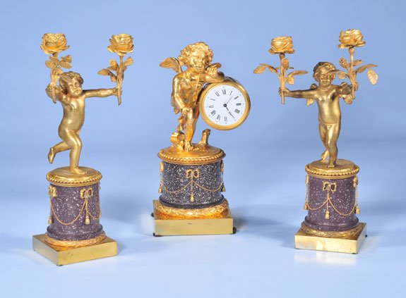 New Haven Criterion Gilt Metal Figural Mantel Time Pieces Featuring Two Putti3 hrs LeftCapo Di Monte Style Blanc De Chine Figural Table Suite, Lot of 5Mar 21, 202619Th Century 3 Piece Bronze & Marble Clock Set195 Lots AwayImportant Ormolu-Mounted Lapis Lazuli Mantel Clock with Companion CandelabraMar 12, 2026An antique Empire-style pocket watch stand and a Swiss-made Conoseur clock and standMar 15, 2026Gilt Bronze Garniture Louis Xv Style113 Lots AwayLouis XVI Style Bronze and Marble Clock Set, 3Apr 30, 202619th Century French Dore Bronze Clock Set with CandelabrasMar 12, 2026French Louis XVI Style Sevres Porcelain Bronze Clock and Candelabra Set of 37 days LeftSet of 2 Art Nouveau Gilt Bronze Figural Candelabra Lamps on Rouge Marble BasesMar 16, 2026A 20th Century French table clock with three Cherubs holding a sphere aloft569 Lots AwayFrench Bronze Mantle Clock and Candelabras, Ca. 19th C., H 20" 3 PCSMar 19, 202619thC 3-pc Garniture Set, Cherub with Dragonfish6 days LeftA LATE 19TH CENTURY FRENCH BRONZE AND MARBLE FIGURAL CLOCK GARNITUREMar 19, 2026FRENCH EMPIRE GILT BRONZE MANTLE CLOCK5 days LeftFrench Greek Classical Theme Garniture Set6 days Left