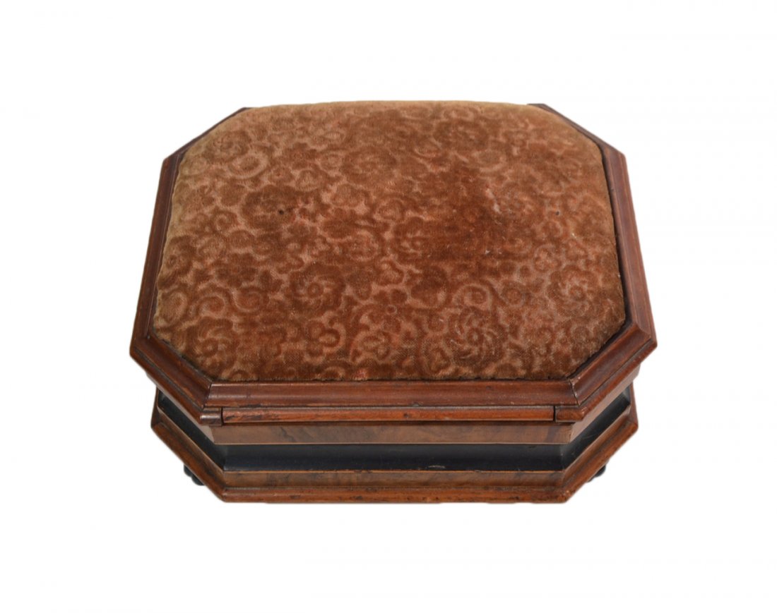 SoldEnglish Berlinwork Walnut Foot StoolEnglish Berlinwork Walnut Foot Stool, Mid-Nineteenth Century. The top worked in a diaper pattern of stars within diamonds, two sides with panels depicting hunt scenes and two depicting farmyard scenesSee Sold Price