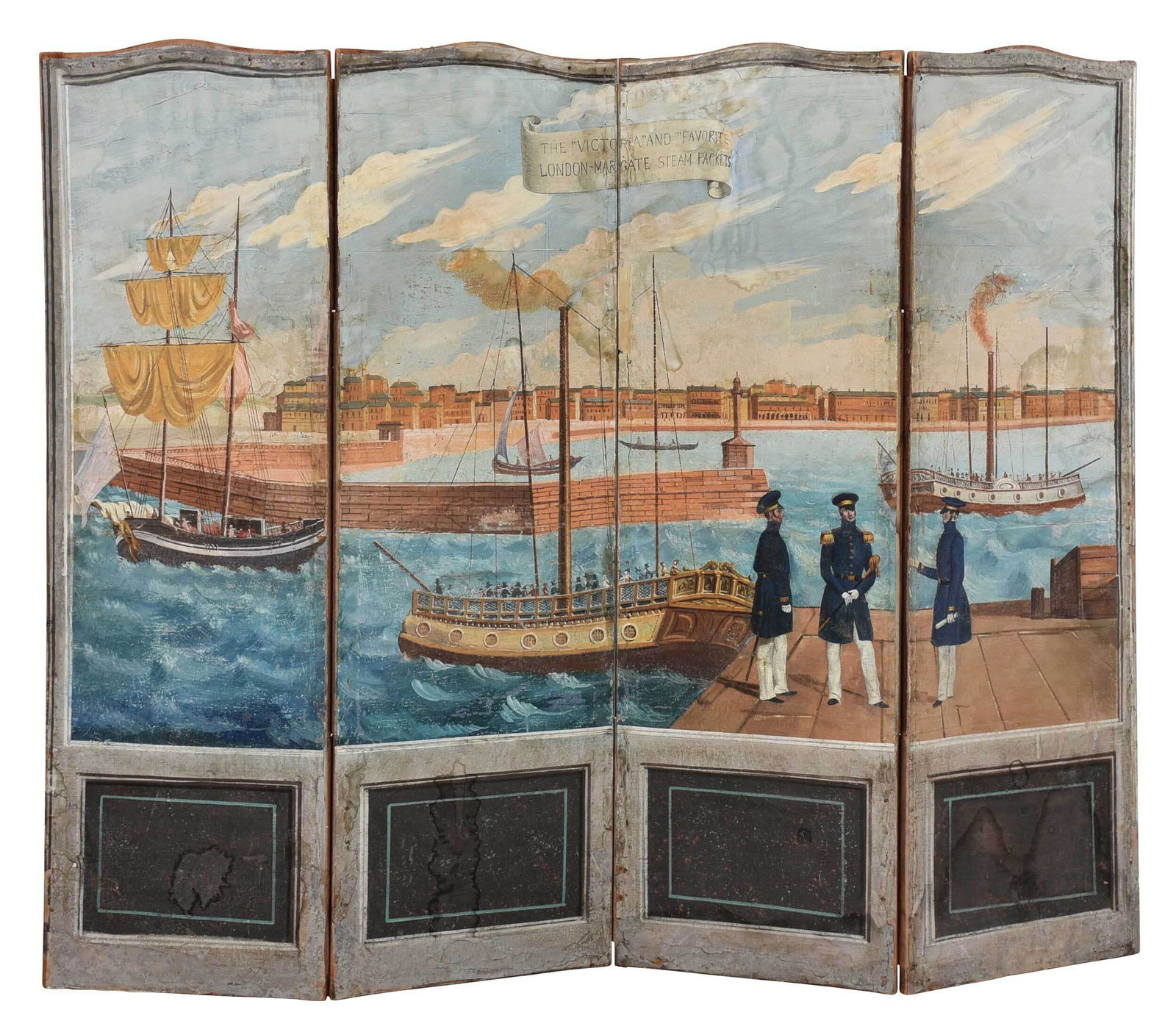 English Hand Painted Four Panel Room Screen