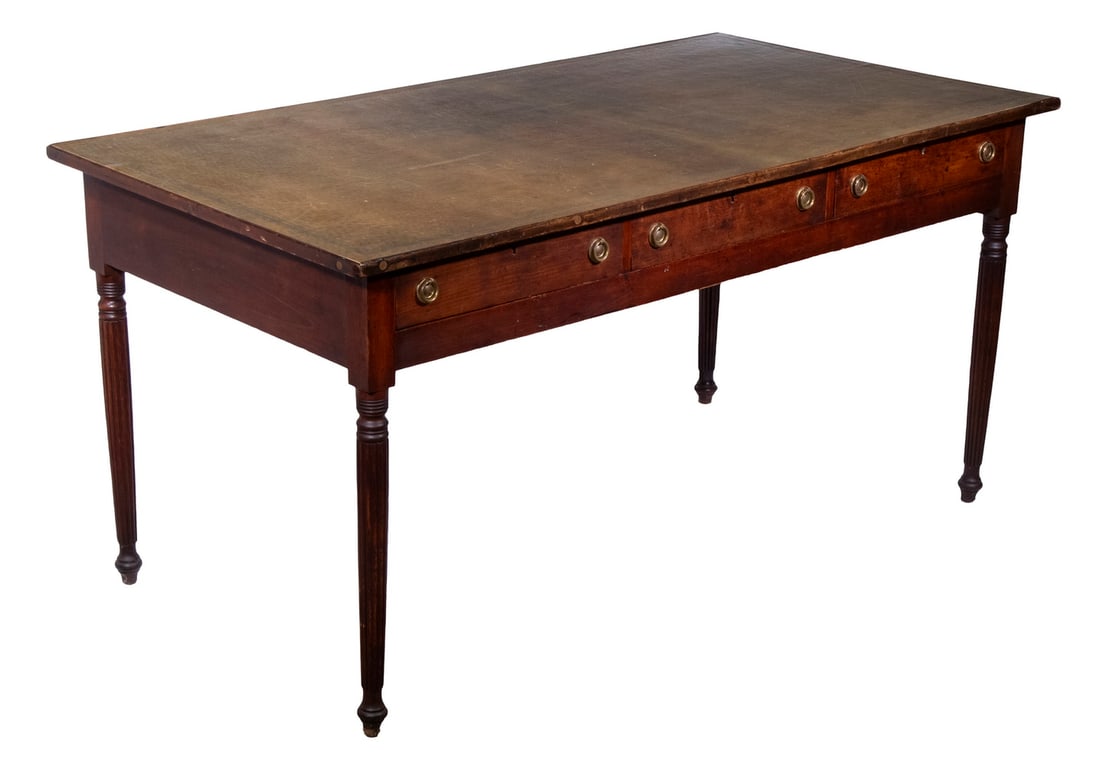 ENGLISH LEATHER TOP LIBRARY TABLE