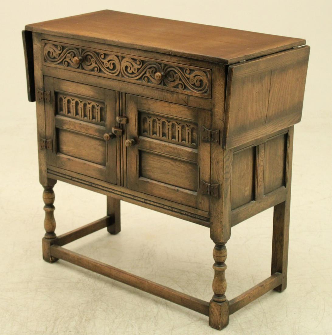 British Carved Oak Drop Leaf Gateleg Table #1