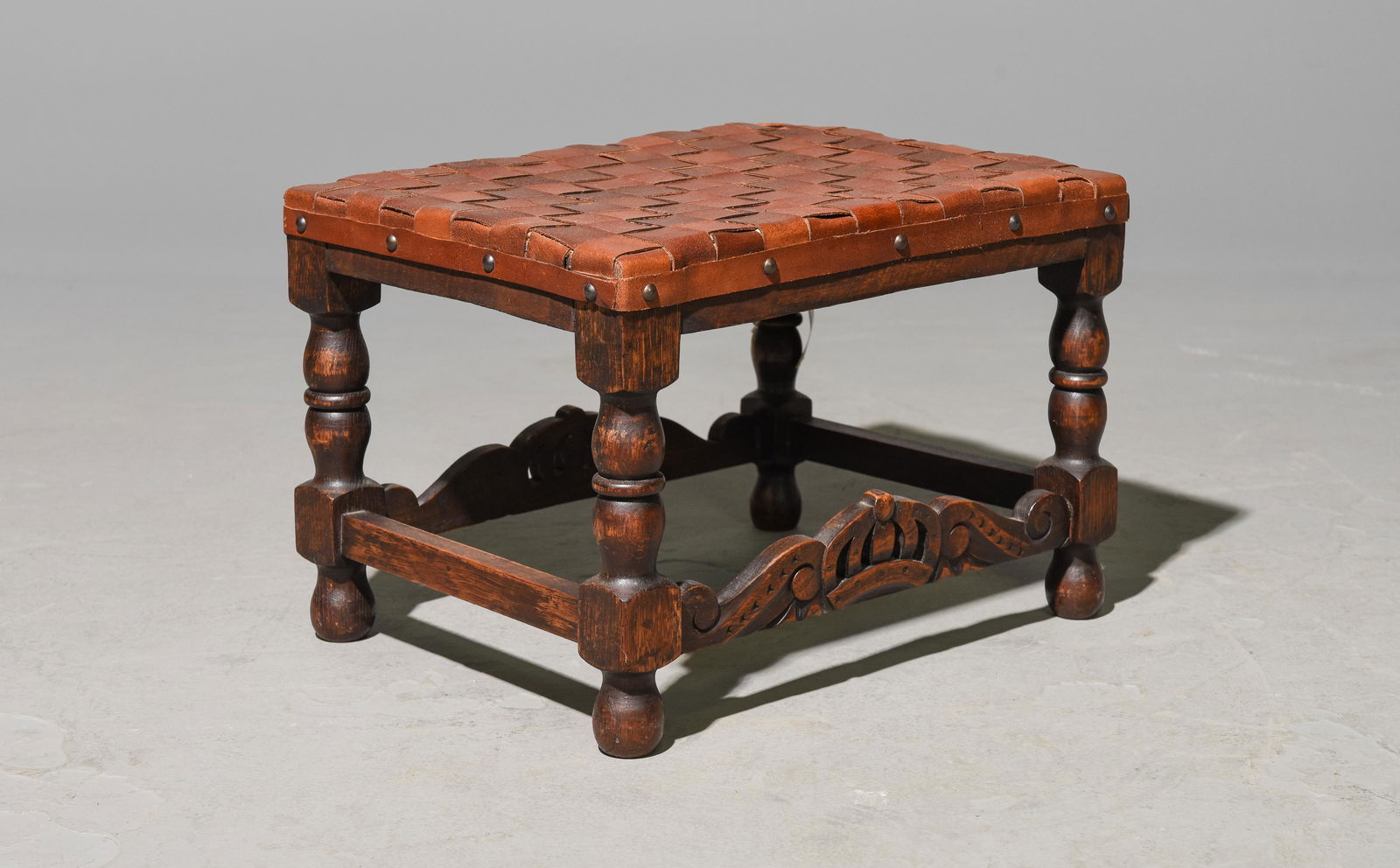 English Oak Woven Leather Strap Stool