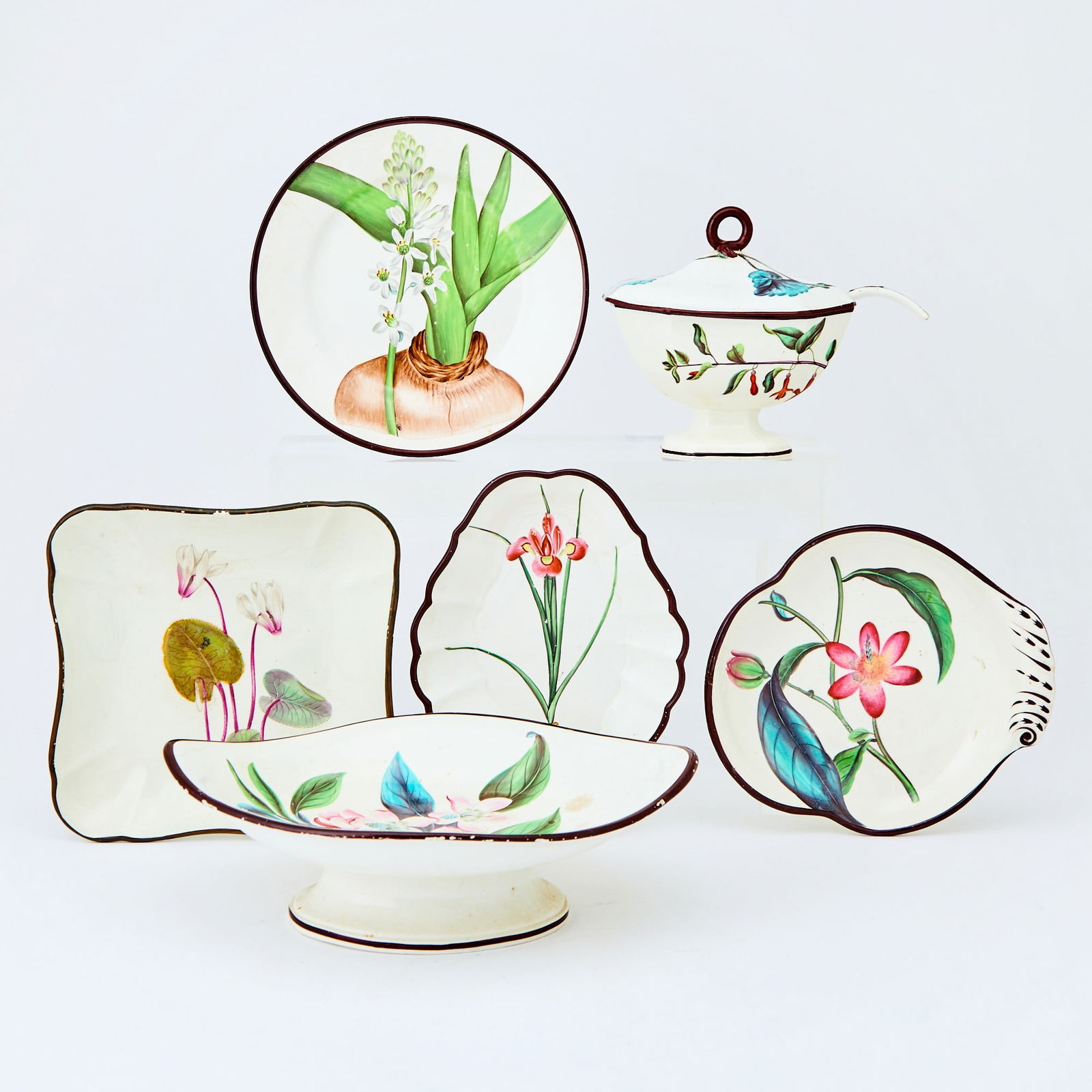 English Pearlware Botanical Partial Dinner Service