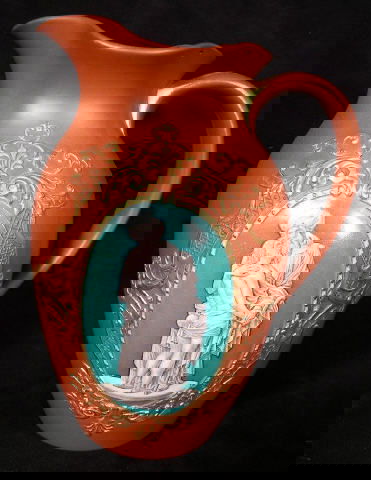 SoldRedware Pitcher with CoverRedware pitcher with lid. H 8" Dia. 4-3/4". Condition: Excellent. Very minor wear to glaze on rim. Copy and paste this link for high-res images. https://www.dropbox.com/sh/cjbvq6ouku3gfia/AAAxkSgHFUD1See Sold Price