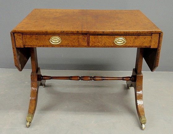 English Regency burl walnut sofa table with cut-corner