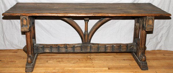 English Oak Tavern Table, 18th CenturyFeb 25, 2026SPANISH BAROQUE STYLE OAK TRESTLE REFECTORY / DINING TABLE, 115"L6 days LeftFRENCH OAK MONASTERY TABLE, LATE 18TH / EARLY 19TH C.5 days LeftSPANISH BAROQUE STYLE OAK TRESTLE-SUPPORT REFECTORY / DINING TABLE6 days LeftA TUDOR STYLE OAK AND MARQUETRY DRAW LEAF TABLE, 19TH CENTURYMar 03, 2026FRENCH PROVINCIAL OAK MONASTERY OR REFECTORY TABLE, 75"L5 days LeftOAK DROP-LEAF GATE LEG TABLE, 18TH/19TH CENTURY6 days LeftFRENCH PROVINCIAL WALNUT MONASTERY / REFECTORY TABLE, 19TH C.6 days LeftFRENCH PROVINCIAL OAK FARMHOUSE DINING TABLE, 59"L5 days LeftCERUSED OAK DINING TABLE OR WRITING DESK WITH MORTIS AND TENON CONSTRUCTION C 1940.Feb 25, 2026A Continental Baroque style oak refectory table, incorporating antique elementsFeb 25, 2026Tuscan Style Rustic Walnut Dining Table 8-Ft Double PedestalFeb 26, 2026Antique 19th Century French Bleached Oak Trestle Dining Table757 Lots AwayJames II Style Carved Oak Bench Table England 1920s with Hidden StorageFeb 26, 2026Antique English Center TableMar 27, 2026Stickley Oak Trestle TableFeb 24, 2026