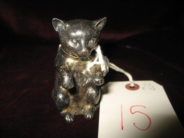 ENGLISH SILVER CAT FORM SNUFF BOX, HINGED HEAD WITH