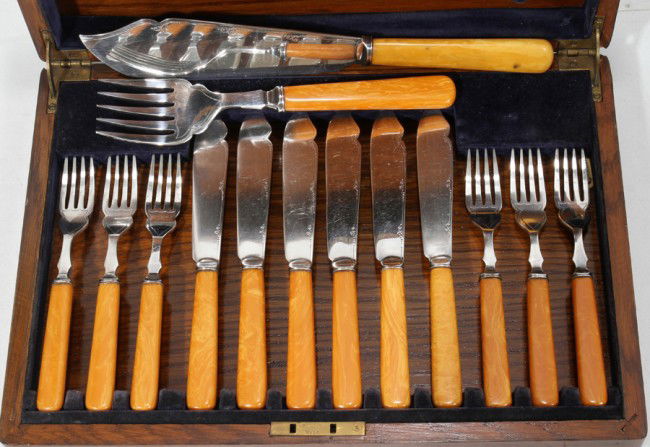 ENGLISH SILVER PLATE & CELLULOID SERVING SET