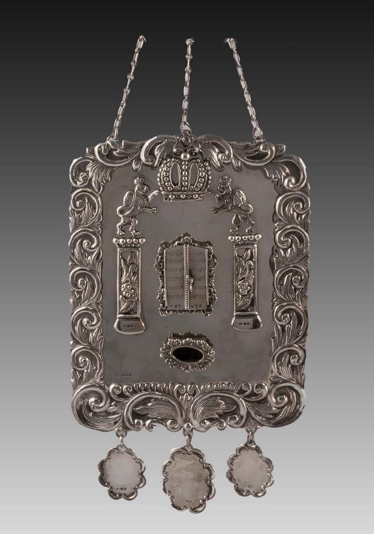 JEWISH SILVER TORAH SHIELD w. CHAIN, 1868