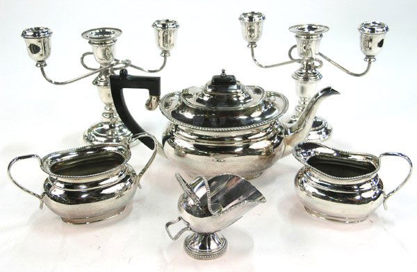 English silverplate tea set candlestick