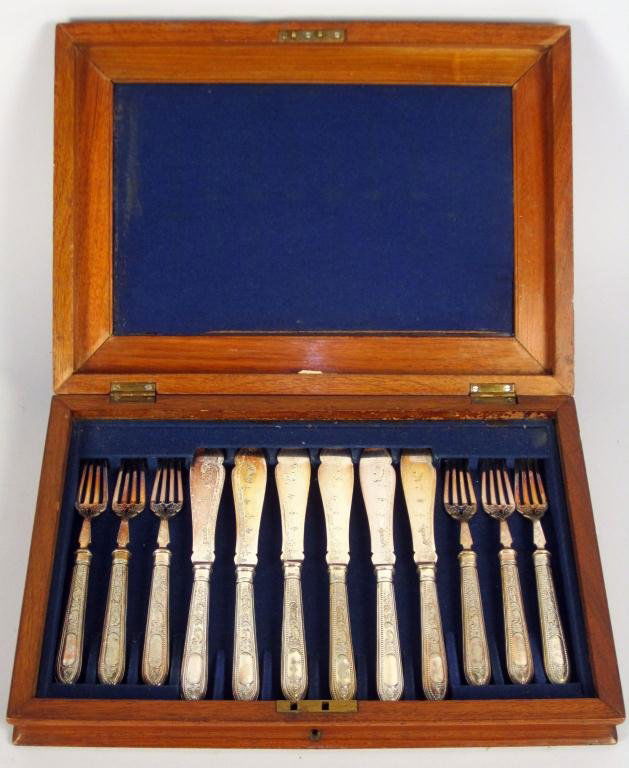 Victorian Silverplate Bone Handle Fish Set7 days Left(26) ENGLISH THOMAS BRADBURY STERLING SILVER FISH SERVICE & OTHER SERVING PIECES3 days LeftCollection Of Silver Plated And Stainless Flatware In Case 12"X16"Mar 08, 2026Collection Of Silver Plated And Stainless Flatware In Case 15"X11"Mar 08, 2026vintage silver-plated fish serving set in its original presentation case.Mar 05, 2026VTG Community Silver Flatware3 days LeftEdward VII Silver Plate Fish Service Set, 24 Pcs.Mar 12, 2026ANTIQUE CASED EARLY VICTORIAN SILVER ORNATE FORK AND KNIFE SET2 days LeftReed and Barton Spanish Baroque Sterling Silver Flatware Set 56 Pieces with Storage Chest5 days Left71 pc Community silverware set in dovetailed wood chestMar 09, 2026Gorham Sea Rose Sterling Silver Flatware Set for 8 40 Pieces with Storage ChestMar 04, 2026Reed & Barton Eighteenth Century Sterling Silver Flatware Set 32 Pcs with Storage ChestMar 02, 2026English Brass-Mounted & Sterling Silver Vanity Case, Thornhill & Co.Mar 14, 2026Carl Eickhorn Solingen 102 pc German Silverplated Flatware Set with Storage Chest3 days LeftAn English Sheffield for Richard silver plated cutlery set in original wooden box4 days LeftEnglish Brass-Mounted, Sterling Silver & Cut Glass Vanity CaseMar 14, 2026