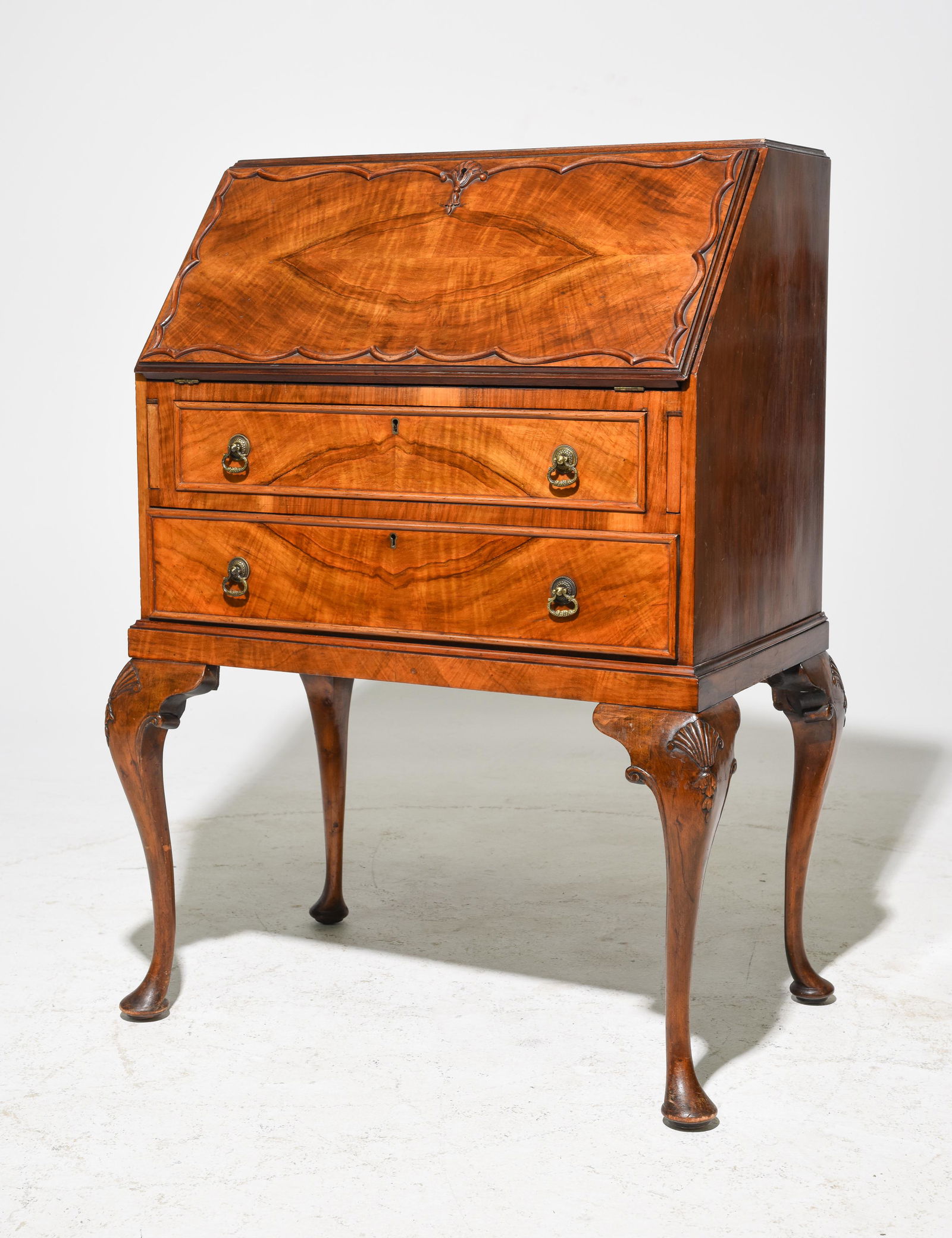 English Walnut Drop Front Desk with Sliding Interior