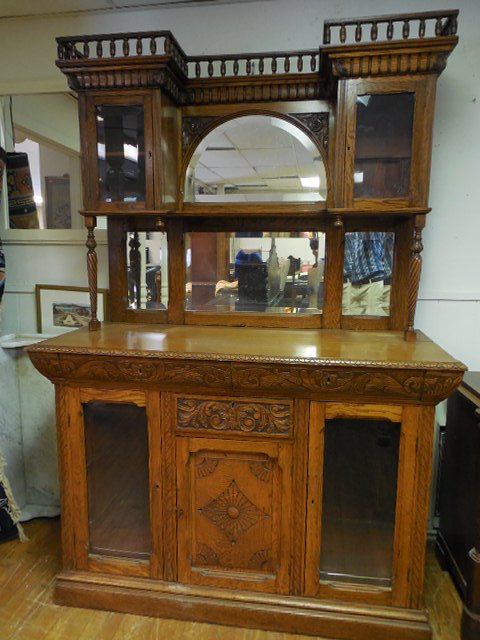 Antique Oak China Cabinet with Ornate Carved Details and Curved Glass HutchLodestar Auctions4.7(444)$475
