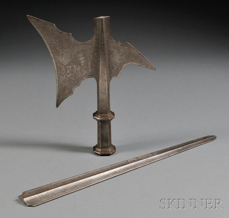 WROUGHT-IRON FIGURAL ORNAMENTAL HANGING / BETTY LAMP HOOKS, LOT OF TWOMar 06, 2026Antique Parrying Sword or Long Dagger3 days LeftAntique Islamic Mughal Indian All-steel Fighting Axe / War Hammer with Silver Koftgari FloralMar 14, 2026Asian Ceremonial Axe or Polearm with Engraved Iron Blade12 hrs LeftAN ENGRAVED INDO-PERSIAN TABARZIN OR WAR AXE, 19TH CEN.Mar 22, 2026Highly Unusual 17th-18th C Staff Axe / Poleaxe Weapon with Leaf Thrusting Spike, Riveted LangetsMar 14, 2026Antique English Scottish Basket Hilt Broad Sword with a Unique BladeMar 14, 2026Viking Period Decorated Iron Spear Head9 hrs LeftAntique 19th Chinese Polearm / Halberd (Ji), Four Crescent Blades w/ Central Spike # 2 of 4Mar 14, 2026Good Antique Asian Indonesian PEDANG Sword Dagger with Dramatic Damascus Steel Blade Carved withMar 14, 2026Antique 19th Chinese Polearm Trident-Form Spear # 1 of 4Mar 14, 2026A FRENCH DAGGER WITH A HORN GRIP AND LEATHER SHEATH, 19TH CEN.Mar 22, 2026Damascus Steel Dagger and Leather ScabbardApr 14, 2026Good Antique British Officer SPONTOON TIPMar 28, 2026Antique Double-Edged Dagger with Ornate Metal Hilt and Scabbard12 hrs Left20th C. Medieval Style Decorative Battle Axe w/ Wooden HaftMar 07, 2026