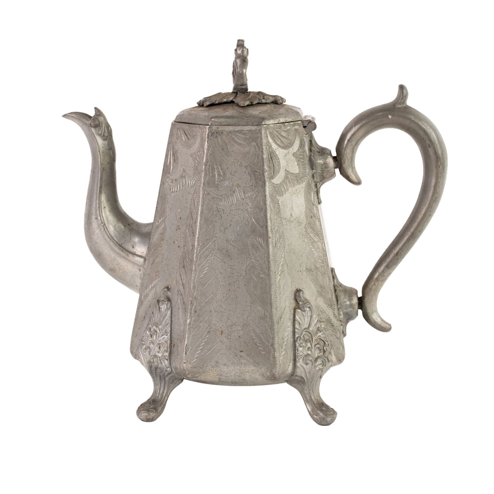 Engraved Pewter Footed Teapot