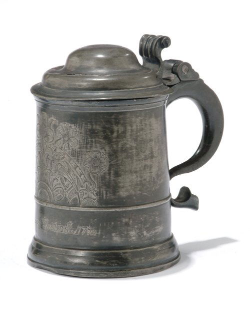 ENGRAVED PEWTER TANKARD Dated 1755 The