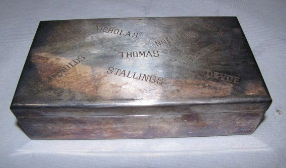 Engraved silver plate box with cedar insert
