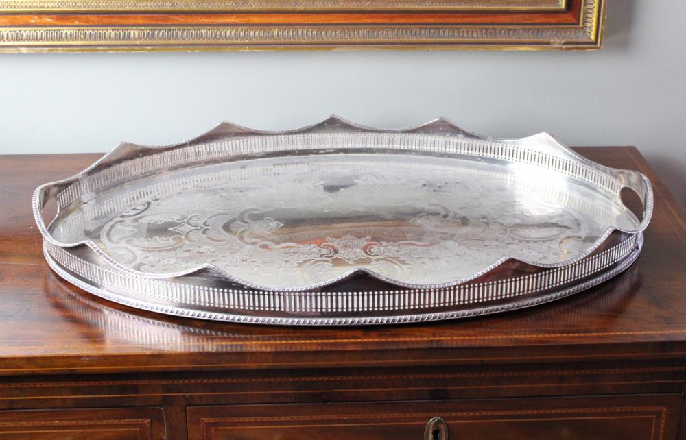Antique c1820 English Regency Silverplate Tray w/ Custom Wooden Table8 hrs LeftPAUL STORR: A LARGE STERLING SILVER MEAT PLATTER, C. 1810 FOR THE EARL OF SHREWSBURYMar 19, 2026Very Large Galleried Silver Plate TrayMar 27, 2026Vintage Poole "990" Solid Sterling Silver Oval Serving TrayJun 30, 2025Vintage Poole "990" Solid Sterling Silver Oval Serving TrayJul 17, 2025Vintage Poole "990" Solid Sterling Silver Oval Serving TrayJun 29, 2025Vintage Poole "990" Solid Sterling Silver Oval Serving TrayJul 19, 2025Vintage Poole "990" Solid Sterling Silver Oval Serving TrayJul 13, 2025Vintage Poole "990" Solid Sterling Silver Oval Serving TrayJul 06, 2025Vintage Poole "990" Solid Sterling Silver Oval Serving TrayJul 09, 20253 Piece 800 German Silver Platter Tray Set 19007 days Left3 Piece 800 German Silver Platter Tray Set 19001 day LeftVictorian Style Silverplate Serving Tray4 days LeftHUGE ENGLISH SILVER PLATED SERVING TRAY / PLATTER2 days LeftLARGE WILCOX SILVER PLATED SERVING TRAY PLATTER2 days LeftA SET OF TWELVE 18TH CENTURY STERLING SILVER DINNER PLATES, C.1788Mar 19, 2026