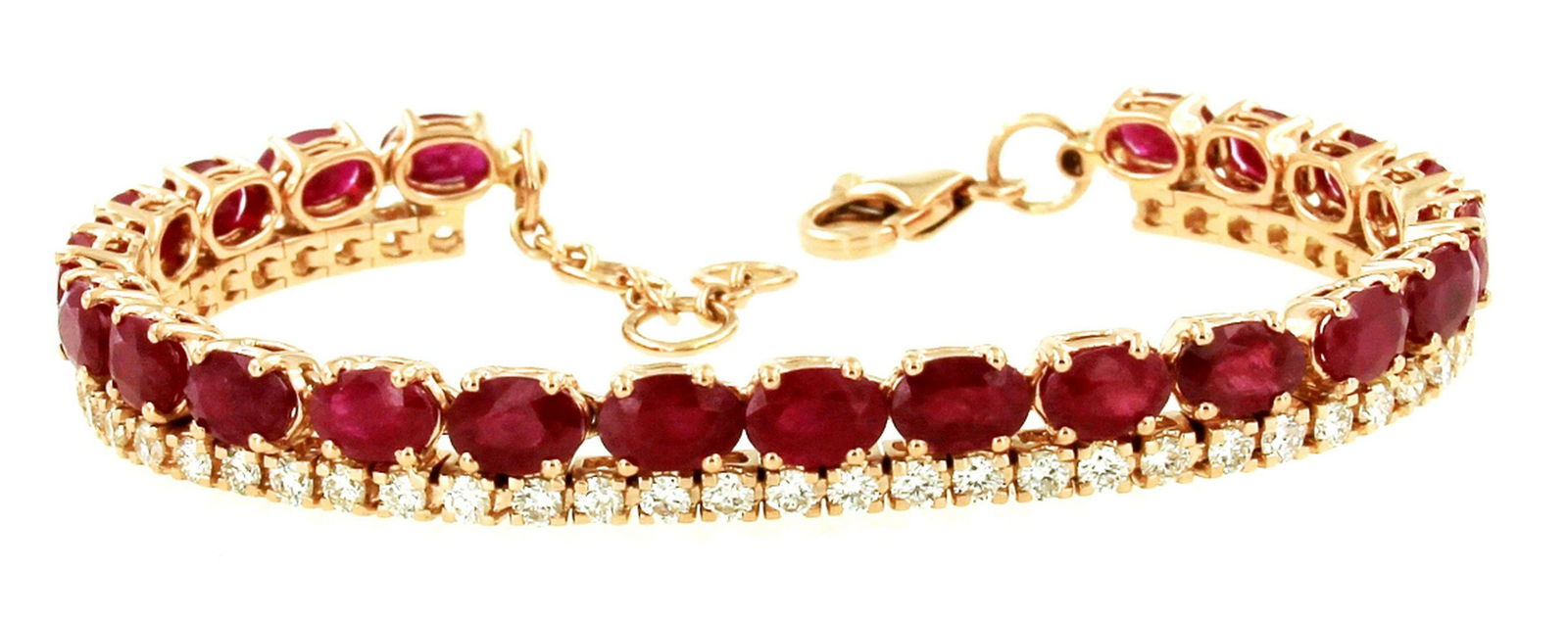 14k Rose Gold 27.99ct Ruby 0.58ct Diamond Bracelet