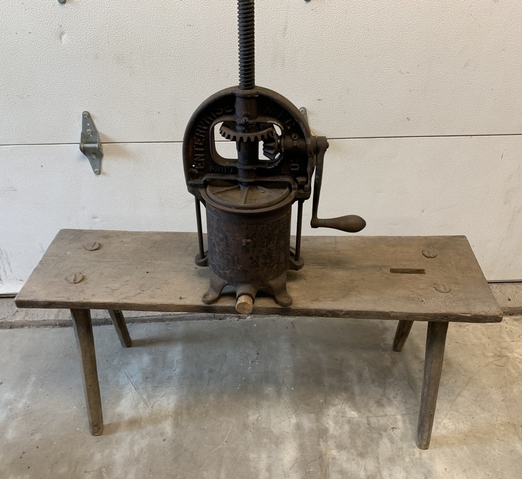 Enterprise sausage stuffer on bench