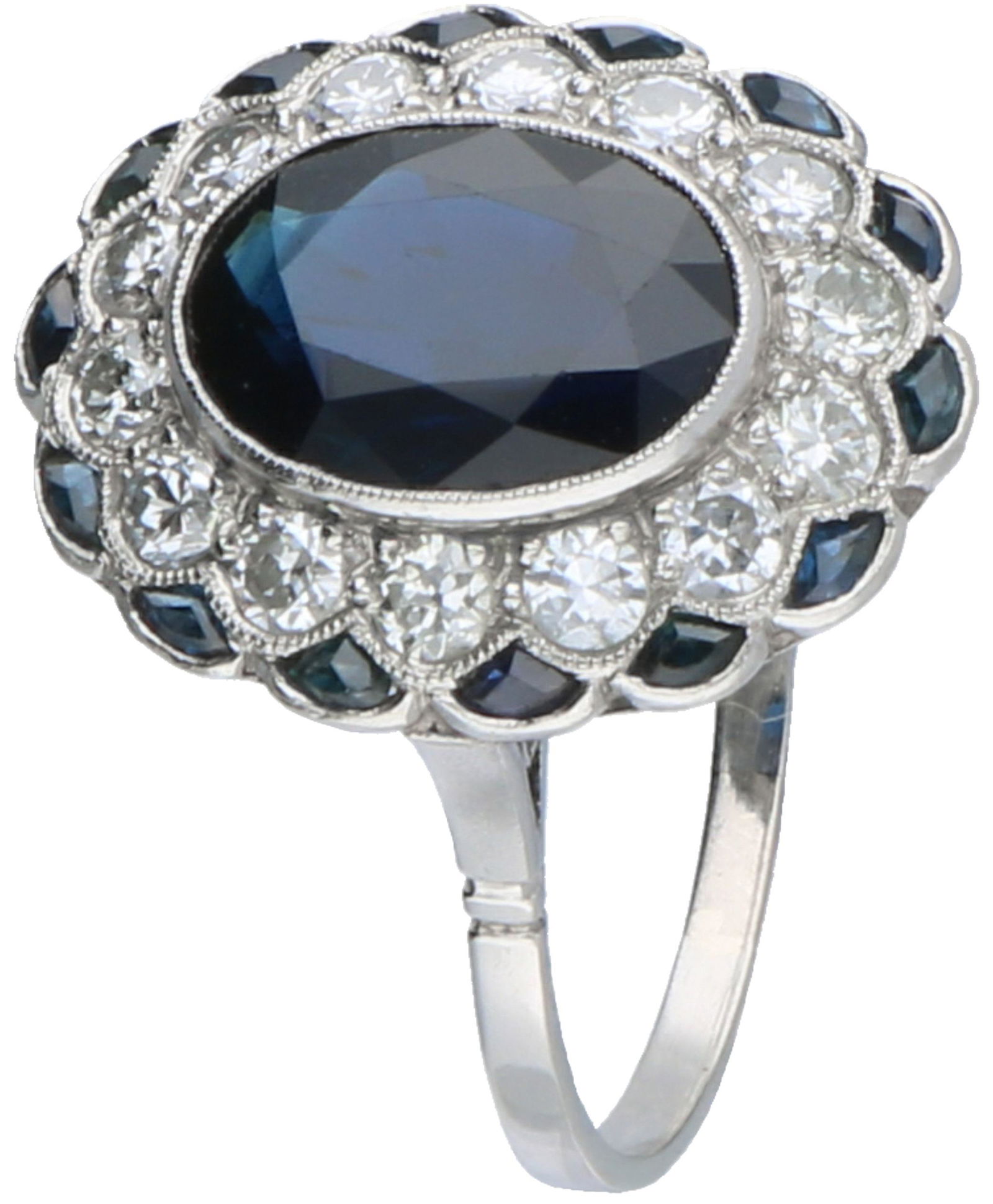 14K White Gold 11.40ct Sapphire and 1.77ct Diamond Ring