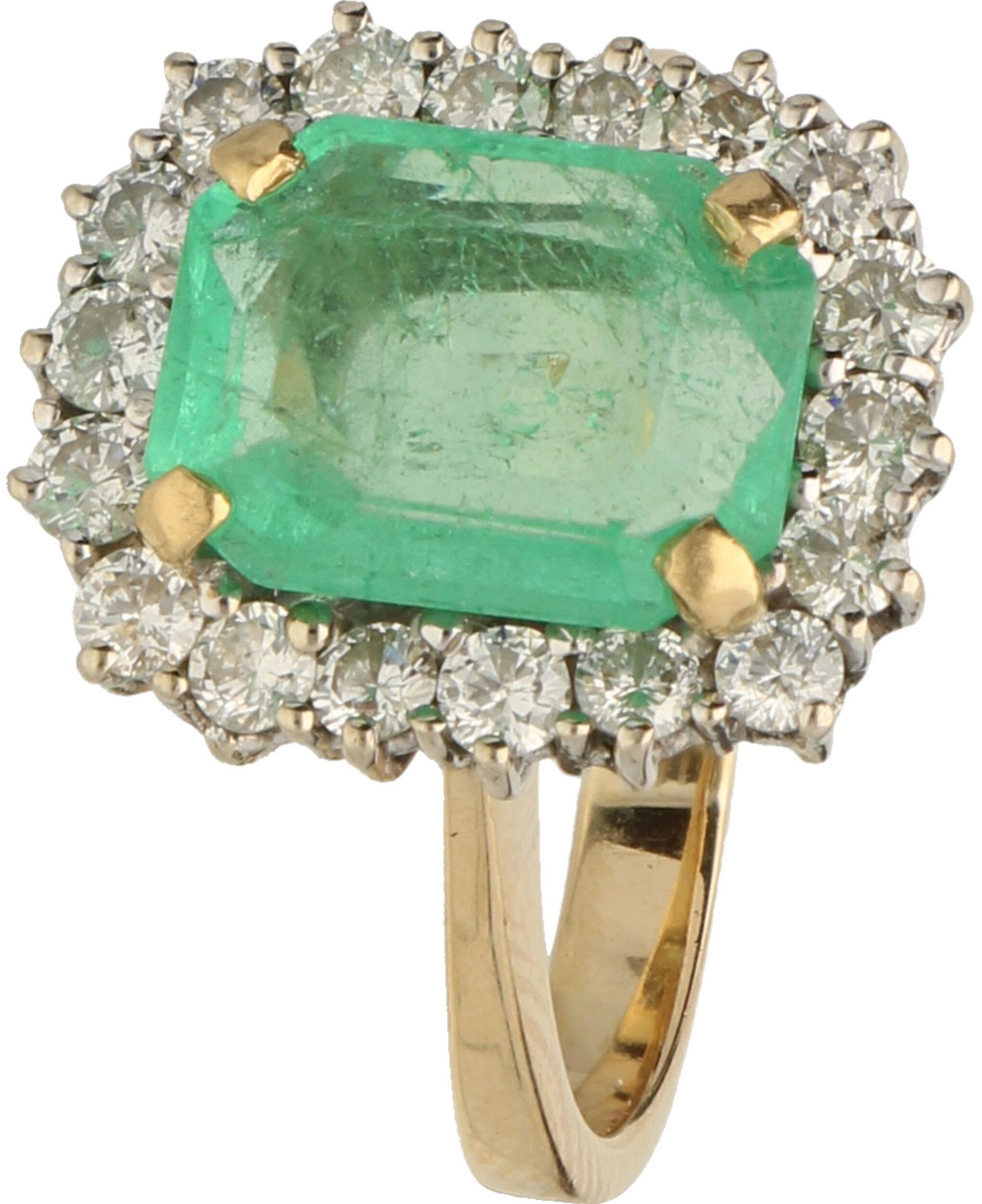 18k Yellow Gold 4.30ct Emerald 1ct Diamond Ring