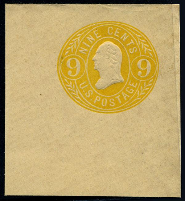 Envelope, 1865, 9c lemon on buff, 9c orange on buff