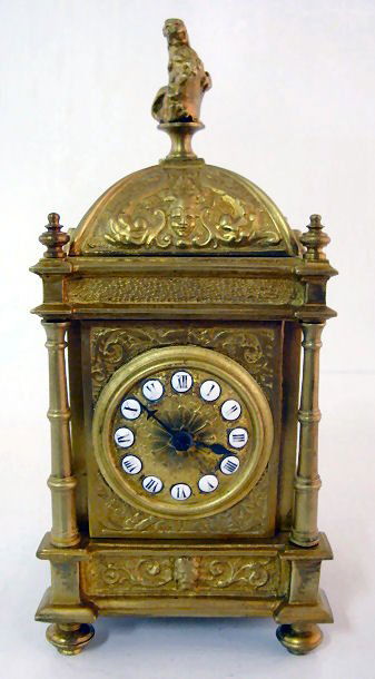 E.P. Depose Brass Time Only Clock w/Lion Finial
