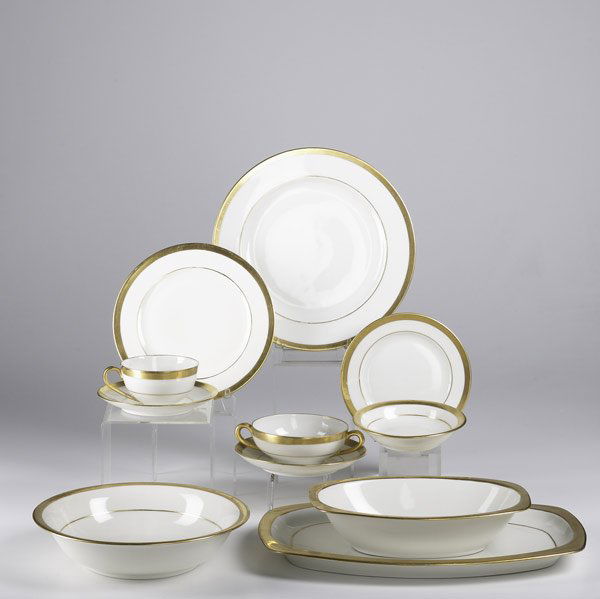Lot of Shelley Bone China White and Gold Dinnerware PiecesMar 26, 2026A. Giraud & Brousseau - Limoges Porcelain Combined Corail Services, 108 PiecesFeb 26, 2026Arabia, Finland. Six Fennica stoneware plates.Royal Copenhagen service no. 607. Two oval porcelain dishes. Gold border with foliage. 1940s.(97) LIMOGES LANTERNIER GILT-ENCRUSTED PORCELAIN DINNER SERVICE4 days Left(84) ENGLISH SPODE 'INDIAN TREE' PORCELAIN DINNER SERVICE5 days LeftEnglish and American Porcelain Tableware, 32 Pcs.Mar 12, 2026Coalport Countryware Porcelain Dinnerware, 29 Pcs.Mar 12, 2026Royal Crown Derby Porcelain Dinner Service, 153Mar 12, 2026Lenox "Eternal" Dinnerware Service, 23 Pcs.Mar 12, 2026Wedgwood Porcelain Dinnerware, 15 Pcs.Mar 12, 2026Rosenthal "Golden Grail" Porcelain Service, 60Mar 12, 2026Hutschenreuther Porcelain Dinner Service for 12Mar 12, 20268 Minton Tiffany Gold Encrusted & Ivory 9" Plates6 days Left71 Pcs, Continental Dinnerware, Cream & GiltMar 07, 2026Royal Crown Derby "Green Derby Panel" service.Feb 24, 2026