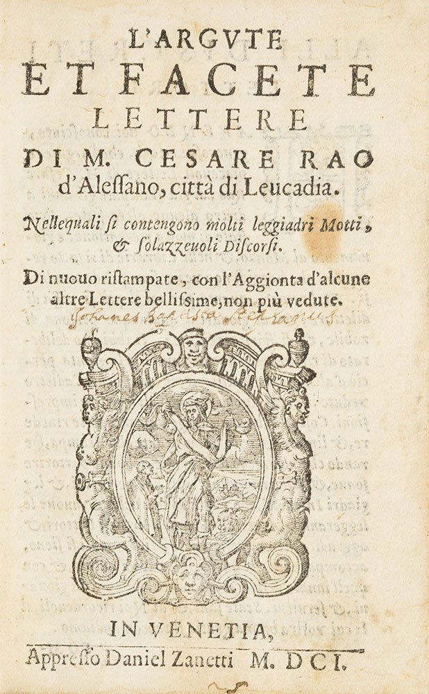 ALESSANDRO TARTAGNI'S 1584 LAW BOOK, AN ANTIQUE VELLUM FOLIO WITH A MANUSCRIPT TITLE7 days Left1546 PHILOSOPHY Anitii Manlii Seuerini Boethi Latinorum ILLUSTRATED antique1548 ARGONAUTICA Valerius Flaccus POETRY antique 16th CENTURY1556 Tractatus de Finibus Regendis Civitatum Castrorum ac Praediorumv antiqueChina.- Le Gobien (Charles) Istoria dell'editto dell'Imperatore della Cina, in favore della4 days Left1567 ALDINE PRESS CATECHISMO by Felice FIGLIUCCI antique 16th CENTURY1561 LUIS de GRANADA TRATTATO DELL'ORATIONE ET MEDITATIONE antique VELLUM1535 ALDINE PRESS JACOPO SANNAZARO OPERA antique POST-INCUNABULA POETRYItaly.- Guicciardini (Francesco) The Historie of Guicciardin: Containing the Warres of Italie andMar 05, 20261735 TRATTENIMENTO ISTORICO SOPRA GLI ATTI DEGLI APOSTOLI antique VELLUM BOUNDBodoni, Duke of Sutherland copy.- Tasso (Torquato) Aminta. Favola Boschereccia...ora per la primaMar 05, 20261564 DIALOGUES by SPERONE SPERONI antique VELLUM BOUND 16th CENTURY1533 POST-INCUNABULA OPERE TOSCANE DI LUIGI ALAMANNI antique VELLUM BOUND POETRYMiddle East.- Garzoni (Maurizio) Grammatica e Vocabolario della Lingua Kurda, first edition, Rome,4 days LeftGregory I (Pope) Omnia quae Extant, Opera, 2 vol. in 1, Antwerp, 1572Mar 05, 2026China.- Viani (Sostegno) Istoria nelle cose operate nella China da Monsignor Gio.Ambrogio Mezzabarba4 days Left